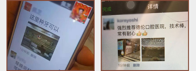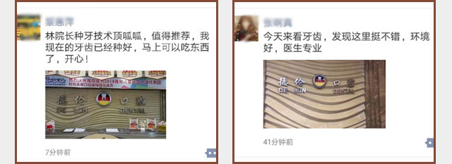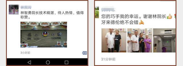 德伦口腔作为口腔连锁领跑品牌,拥有口腔种植案例大数据库,很多人到德伦看牙并乐意在朋友圈分享自己在德伦口腔的经历,点赞德伦口腔!