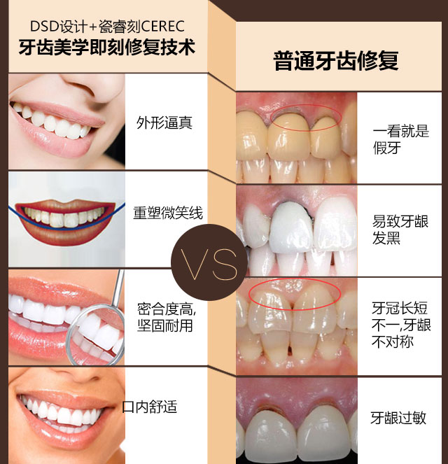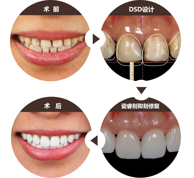 牙齿修复,已不仅仅是功能性的修复,还讲究美观。经DSD数码微笑美学设计与瓷睿刻即刻修复技术结合,让修复后的牙齿不仅逼真耐用,更缔造美丽微笑。